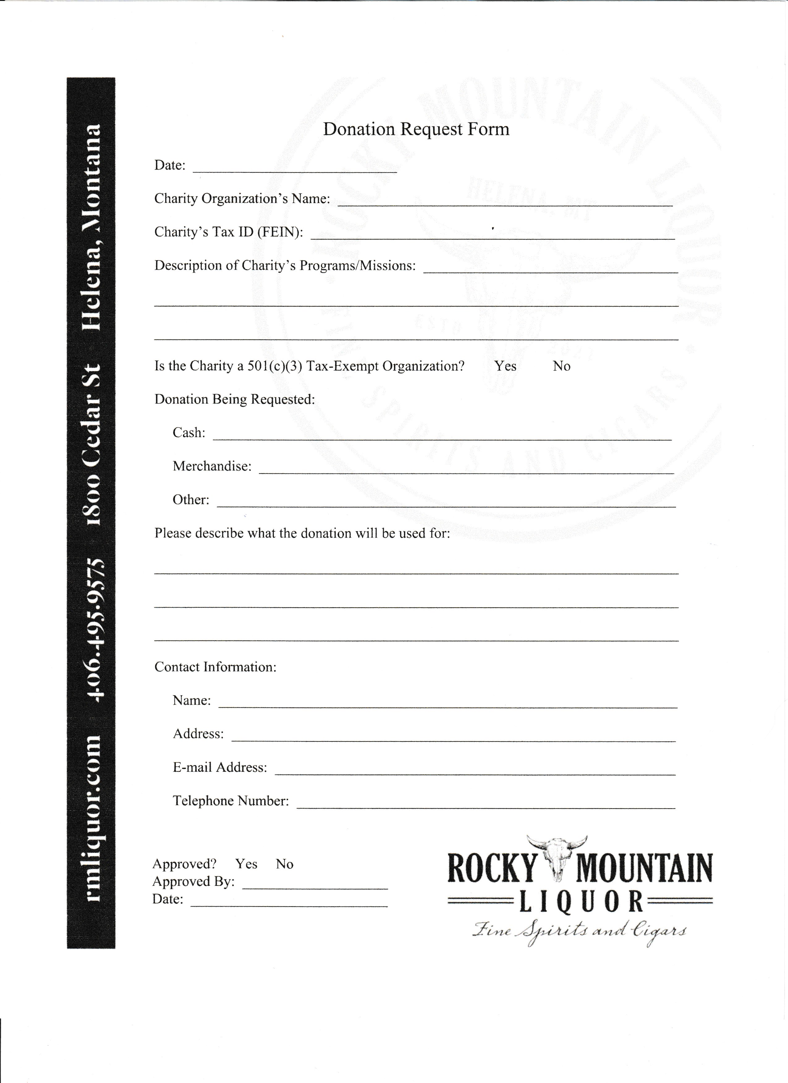 Please fill out the form and email to info@rmliquor.com with any additional information you would like to include!
